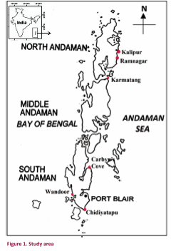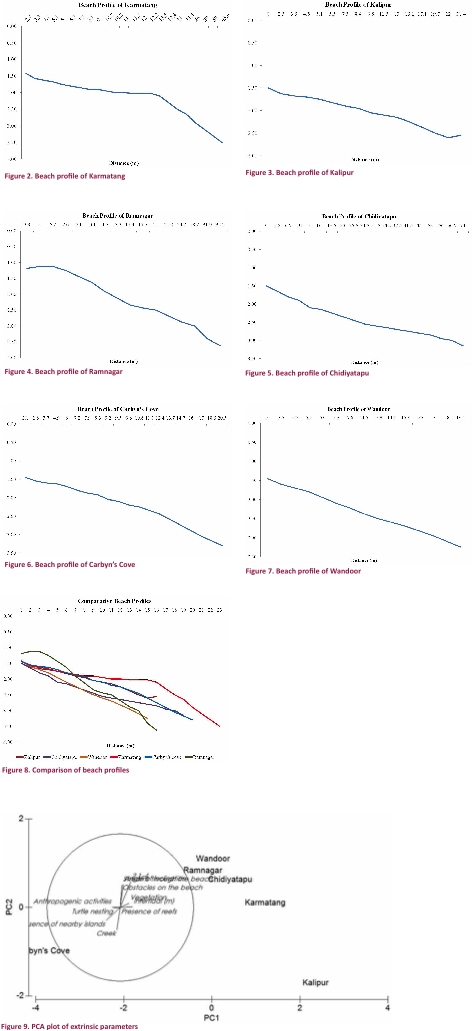 Kalipur, Ramnagar, Chidiyatapu, Carbyn’s Cove, and Wandoor were chosen as study sites. Beach slope, sand grain