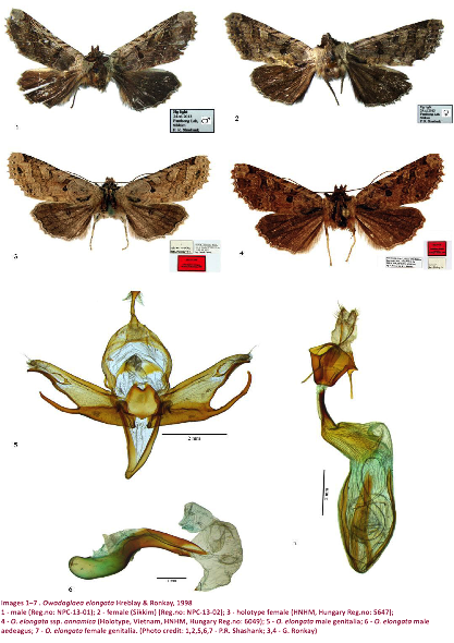 taxonomic placement of the new species. Hreblay & Ronkay (1999) described two subspecies, viz., Owadaglaea elongata ssp. siamica Hreblay & Ronkay, 1999 and O. e. ssp. annamica