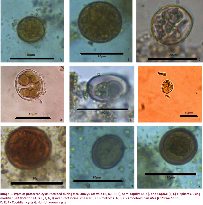 parasites were observed, nine of which were recorded in wild elephants. Among them the most common infection was