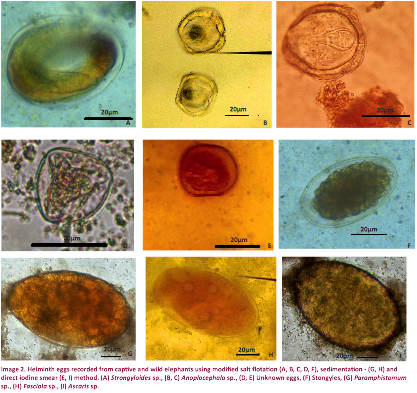 captive elephant at the Temple of the Tooth was infected with the tapeworm Anoplocephala sp. at low intensity of 50 EPG. Some of the GI parasites recorded are