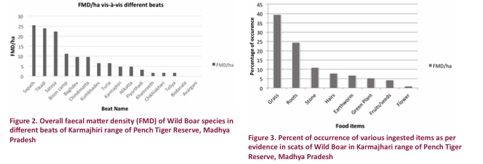 The density of Wild Boar in Sapath and Tikadi beat was 25.5±0.29 and 23.9±0.33 per hectare,