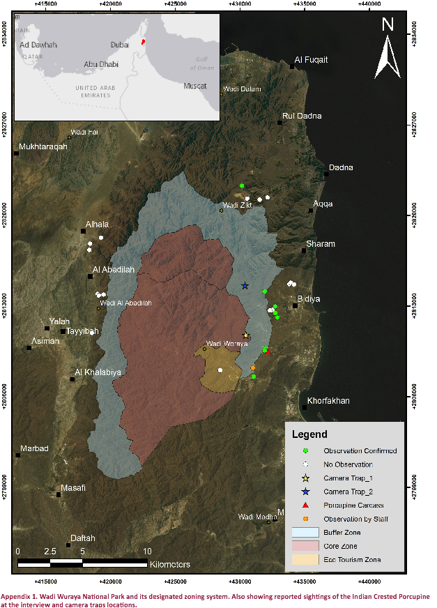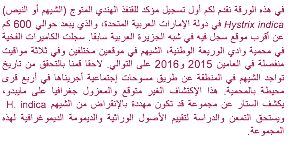 (WWNP), Fujairah, in three separate events in 2015 and 2016. Long-term occupancy of porcupines was confirmed