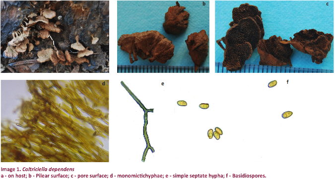 dependens (Berk. & M.A. Curtis) Murrill is being reported from Meghalaya, India. This is the first record of genus Coltriciella as well. Coltriciella